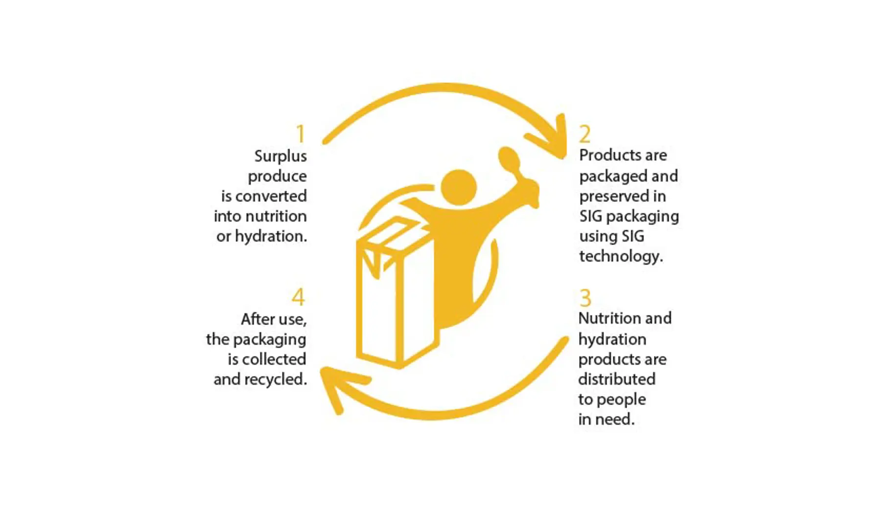 In Bangladesh, where we are piloting our initiative, despite widespread malnutrition, food loss remains high. Our project compensates farmers for their surplus vegetables, which are then processed and preserved in SIG carton packs. These packs provide nutritious meals to people in need and schoolchildren, helping to keep them in school and offering better prospects for their future.