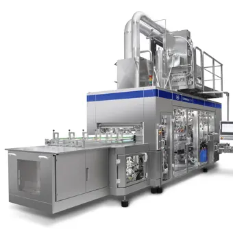 Для формата SIG CompactBloc мы предлагаем специальную машину для розлива пищевых продуктов, которая позволяет разливать продукты с содержанием твердых частиц, с наличием в составе более крупных кусочков, а также с более высокой вязкостью продукта. Такая машина – идеальный выбор для супов, соусов и десертов.