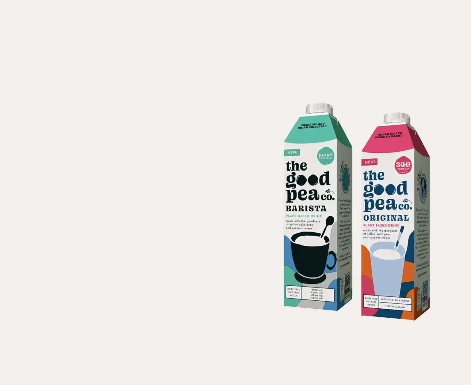 Das britische Start-up-Unternehmen The Good Pea Co hat zwei Getränke auf Erbsenbasis in der SIG Dome 1.000 ml-Packung auf den Markt gebracht: Original & Barista, die satte 34 g Eiweiß pro Packung enthalten, 50% mehr Kalzium als Kuhmilch und mit Vitamin D, B12 und Jod angereichert sind.
