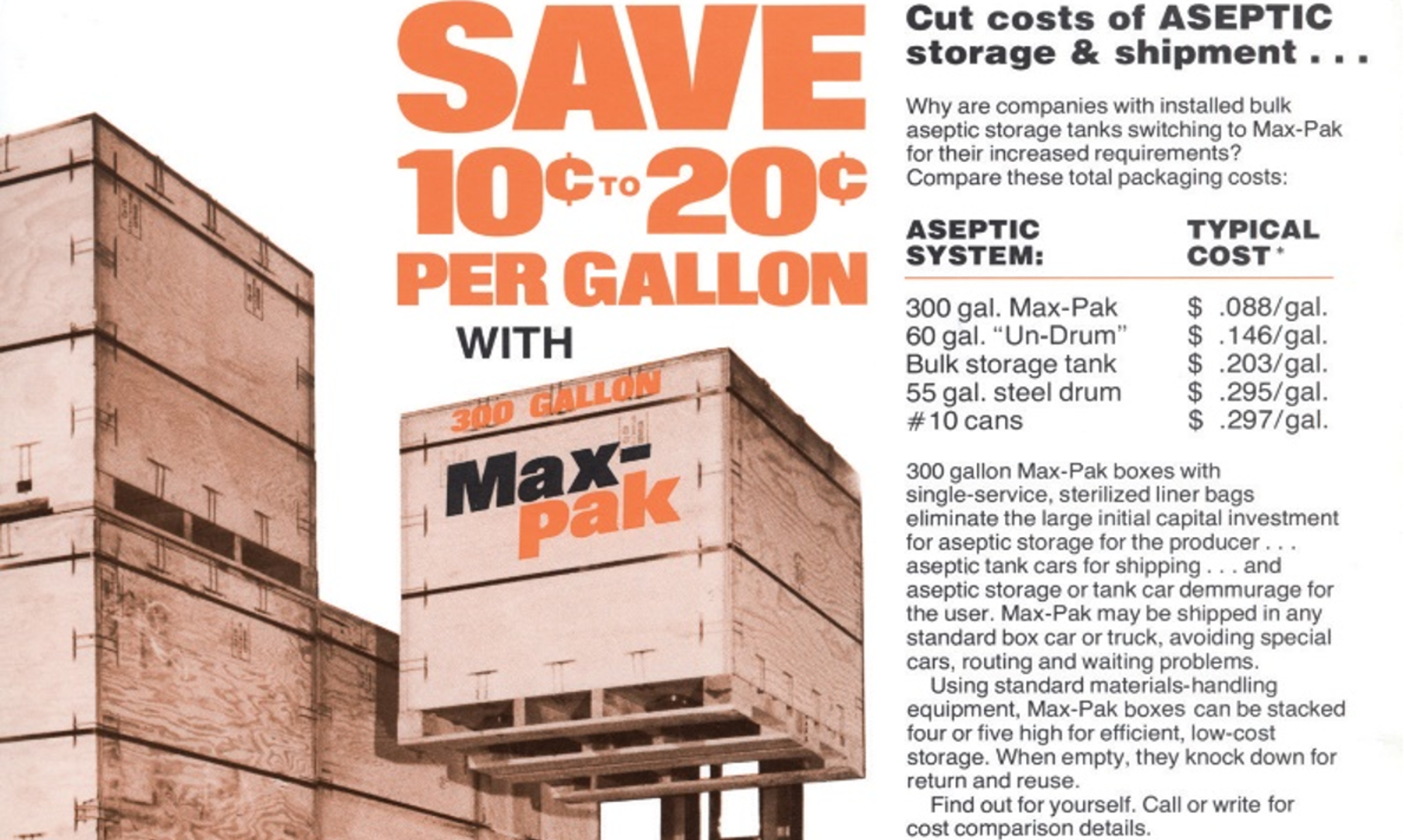 Developed to safely and economically ship juice products from Brazil, bulk BIB goes on to become a standard in industrial fruit and vegetable categories like tomato.