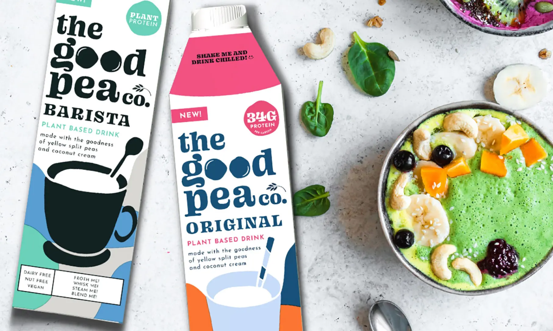 UK-based start-up The Good Pea Co launched two pea-based drinks in SIG’s combidome 1000ml packaging: Original & Barista, which has a whooping 34g of protein per carton, has 50% more calcium than cow’s milk and is fortified with Vitamin D, B12 and Iodine.