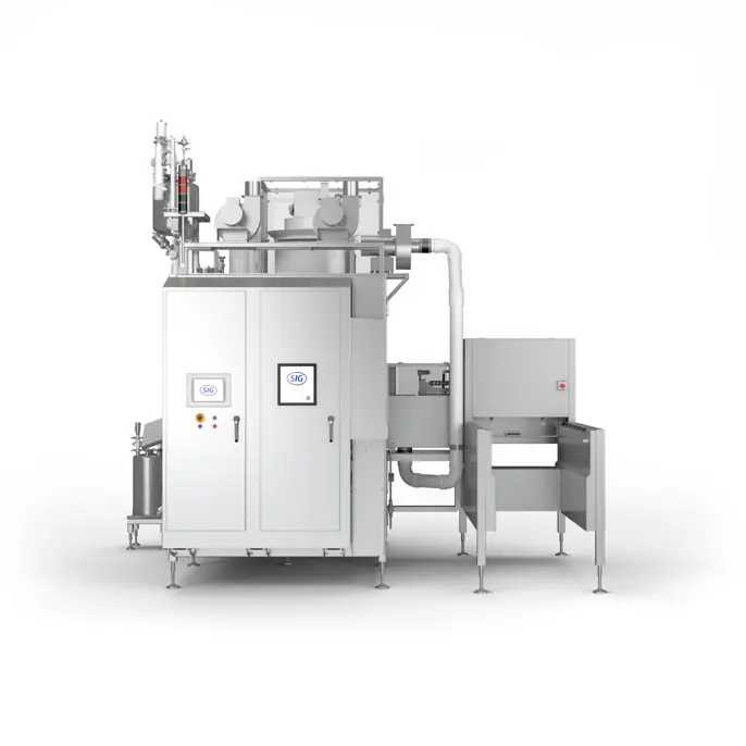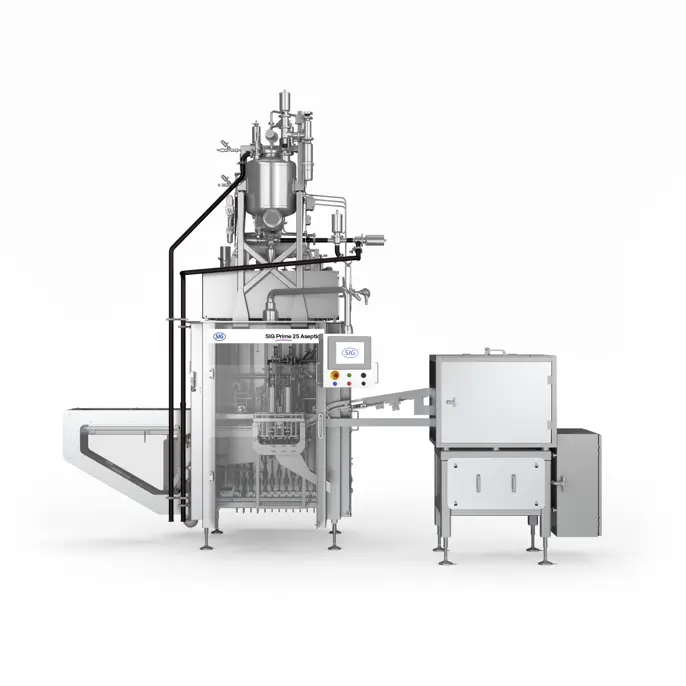 The SIG Prime 55 In-line Aseptic pouch filler is the next evolution of our state-of-the-art spouted pouch filling equipment. With this evolution in aseptic filling technology, sterilization by an outside provider is no longer necessary, as the pre-made spouted pouches are delivered to you and then sterilized in the filling machine at your plant. This offers you: