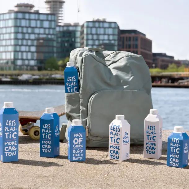 SIG DomeMini is mainly made from FSC™-certified paperboard (trademark licence code: FSC™ C020428) and produced using 100% renewable electricity. With the high share of forest-based renewable material as well as a sophisticated resource-efficient and space-saving design, SIG DomeMini comes with a number of environmental benefits compared to alternative packaging options like plastic bottles.
