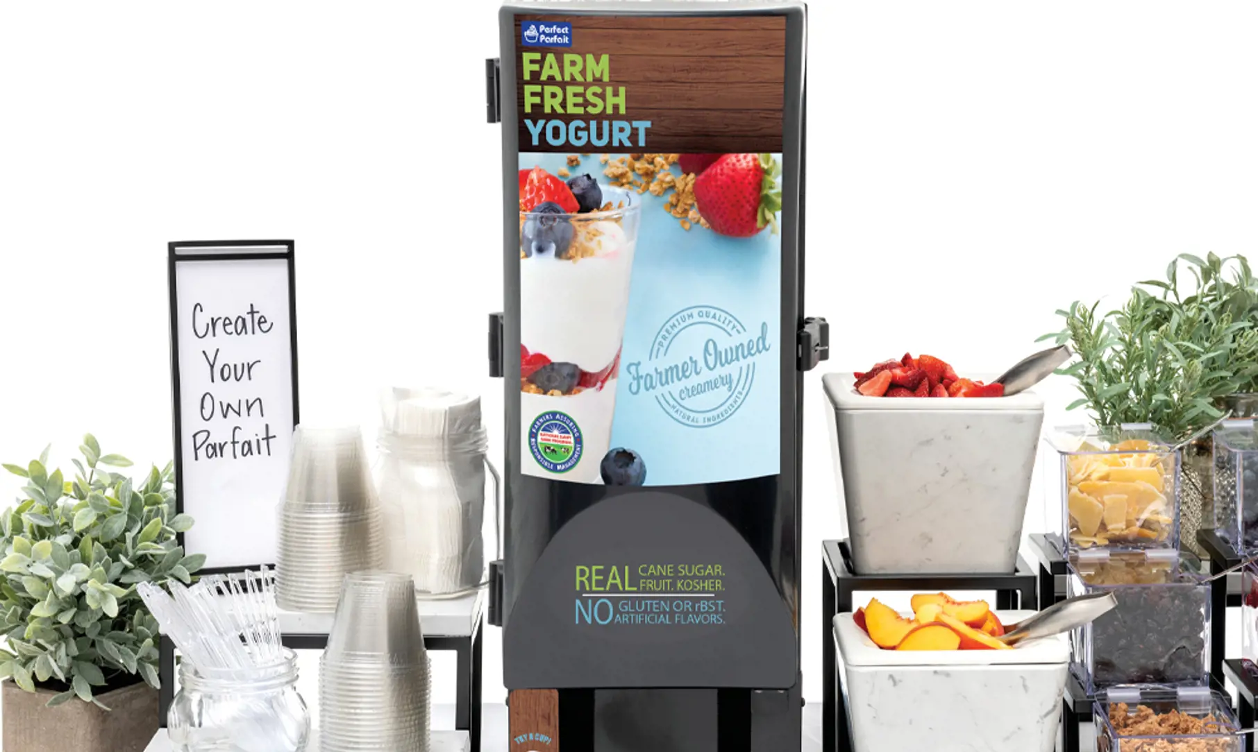 Perfect Parfait is a US-based dairy company that specializes in yogurt and yogurt dispensing for the hospitality industry. They offer the first fresh yogurt dispensing system that is revolutionizing fresh yogurt service in all facets of the foodservice industry. Their yogurt dispensing system provides the ideal way to create uniform, pre-made yogurt parfaits for grab-and-go or large-scale service. After industry research, they discovered that hospitality outlets like hotels were losing over $3MM annually due to pilferage and shelf life concerns of yogurt cups. With the Perfect Parfait dispenser, not only can you control your food and labor cost through fast, consistent, portion-controlled servings, you can also maintain exceptional food safety standards and minimize waste through bag-in-box packaging.