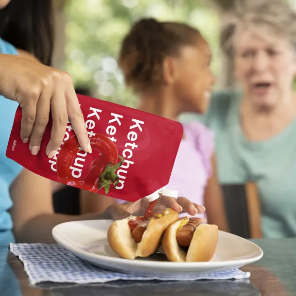 Stand out on shelves with alternative pack formats like corner spout pouches, which allow consumers a new, ergonomic condiment dispensing experience.