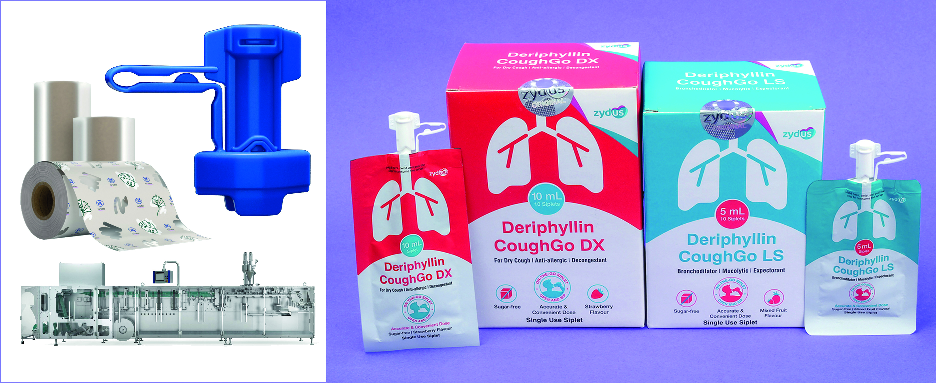 The new packaging solution for Zydus’ “Deriphyllin CoughGo” enables 5 ml and 10 ml mini-portions of ready-to-consume medicine in spouted pouches, also known as siplets. Traditionally, cough medications are offered in multi-serve bottles, where precise dosing is often difficult or leads to product waste when unused medicine expires before the packaging is emptied. Zydus' move to single-serve spouted pouches directly addresses these issues by offering convenient, portable, and unbreakable alternative, where a precise dosage is delivered in the pouch. The new packaging solution reduces contamination risk and improves ease and convenience for patients. No spoons, syringes, or other tools are required, making this solution ideal for use on the go.