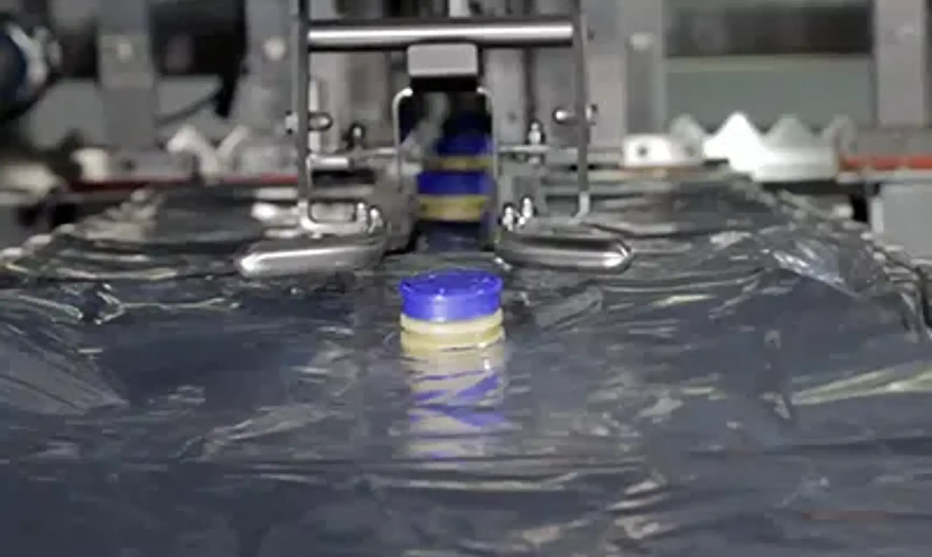 The Materials Science Lab also has a pilot line with the capability to create and test trials of film with up to nine layers before it is brought into full production. Evacuation tests ensure as much product as possible is being evacuated from the bag. OTR (oxygen transmission rate) tests measure how much oxygen can permeate the package. Fitment testing simulates what a fitment goes through when a bag is filled—being uncapped and re-capped—and makes sure that there are no leaks between the spout and cap.