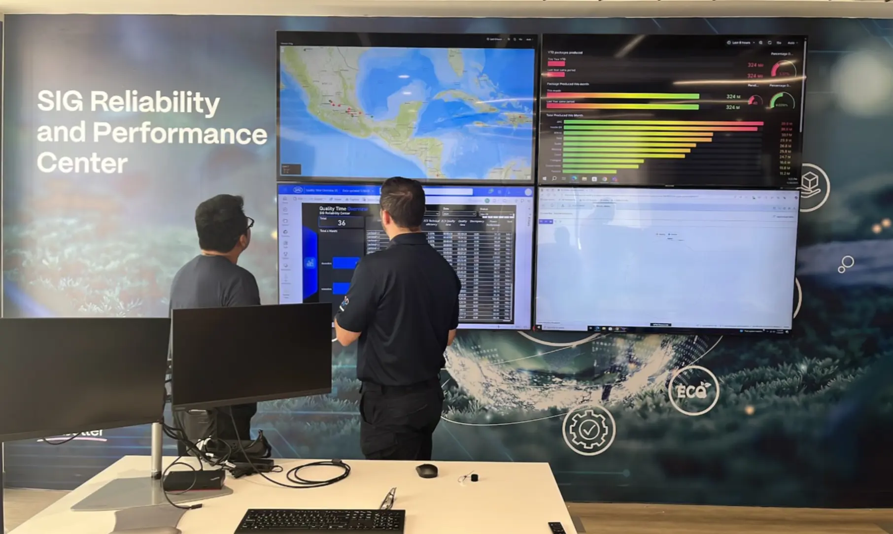 - Datos analizados por expertos: Los expertos senior de SIG supervisan las líneas de llenado en nuestros Centros de Confiabilidad para prevenir y anticipar los paros antes de que se produzcan y realizar evaluaciones predictivas sobre el desempeño de los equipos.