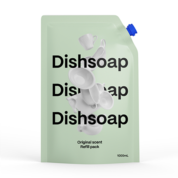 - Des recharges faciles avec des poches souples à bouchon au coin.