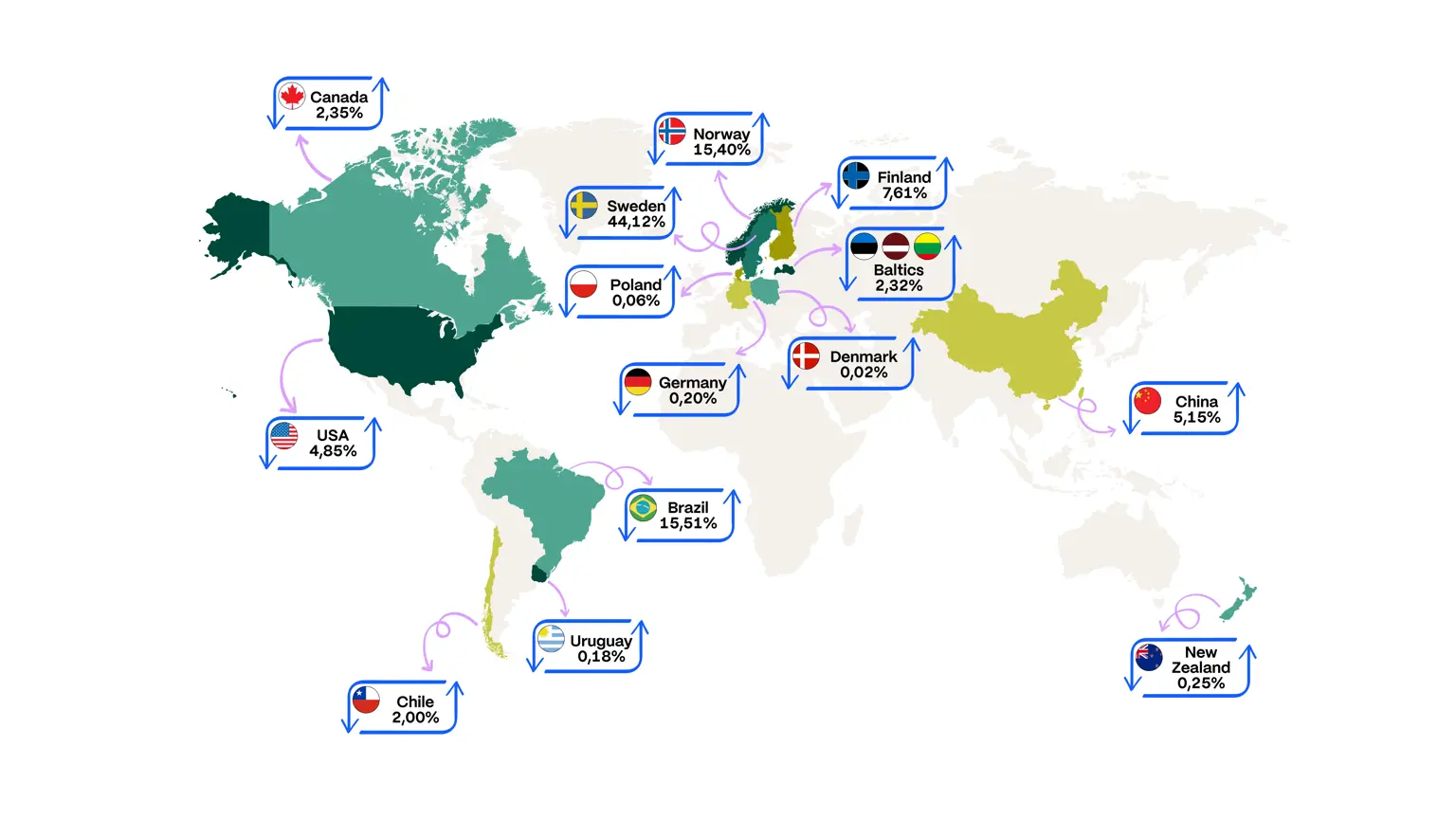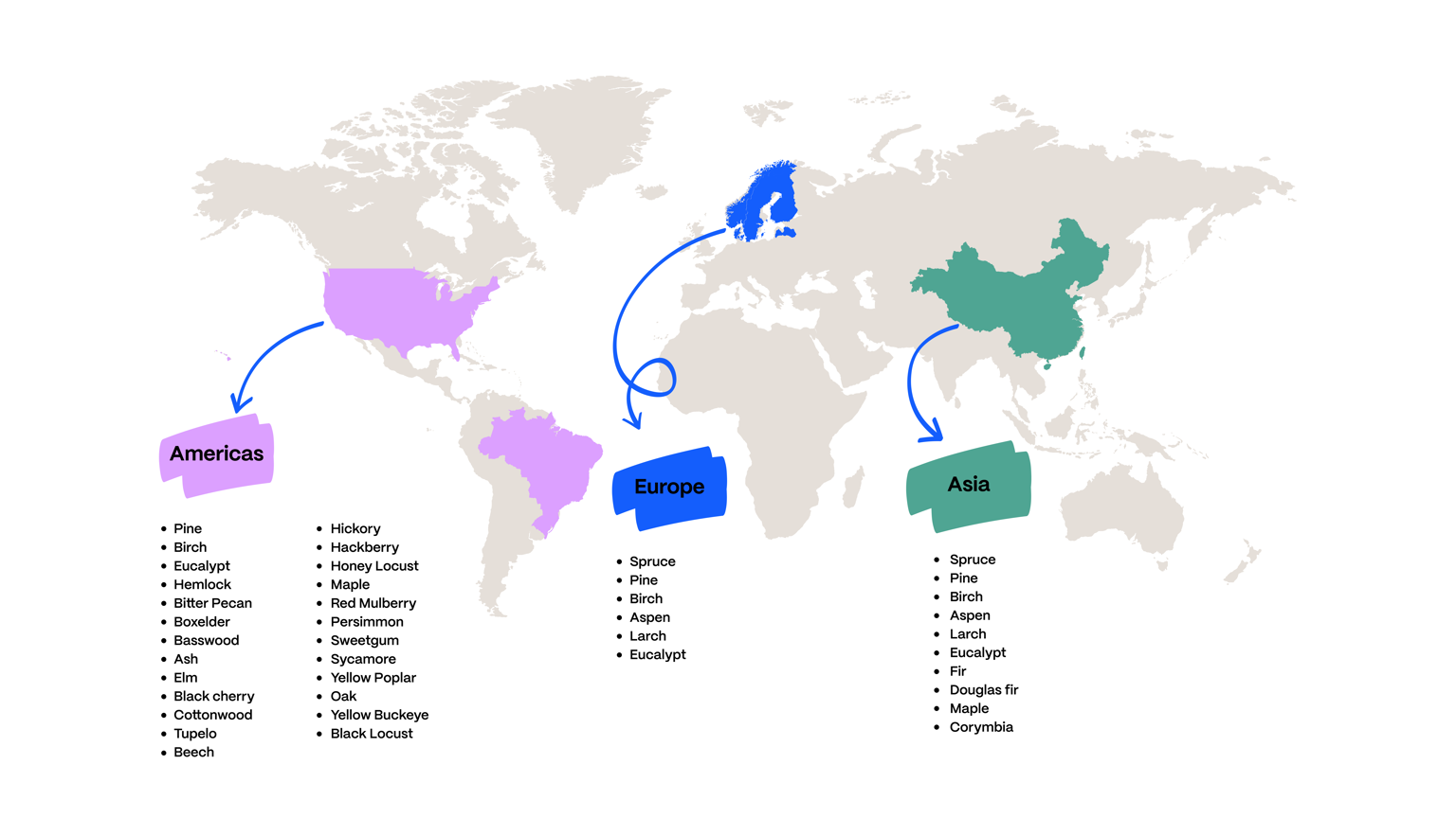 La majorité du bois utilisé pour nos emballages carton SIG provient de Scandinavie, suivie par le Brésil.