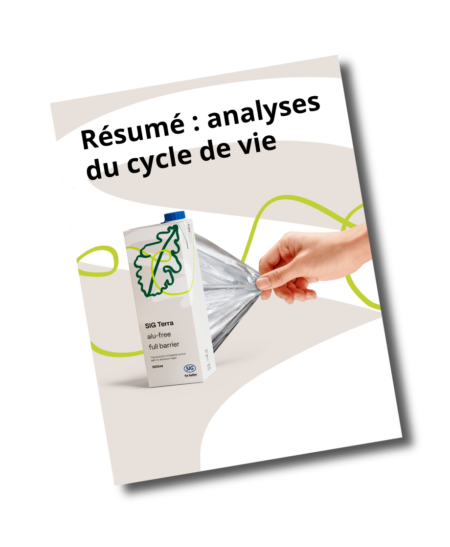 Passez à l’emballage sans couche d’aluminium avec SIG Terra Alu-free + Full barrier et réduisez les émissions de CO2pour les emballages grands formats jusqu’à-61 % de CO₂1 en association avec des polymères d’origine forestière2.
