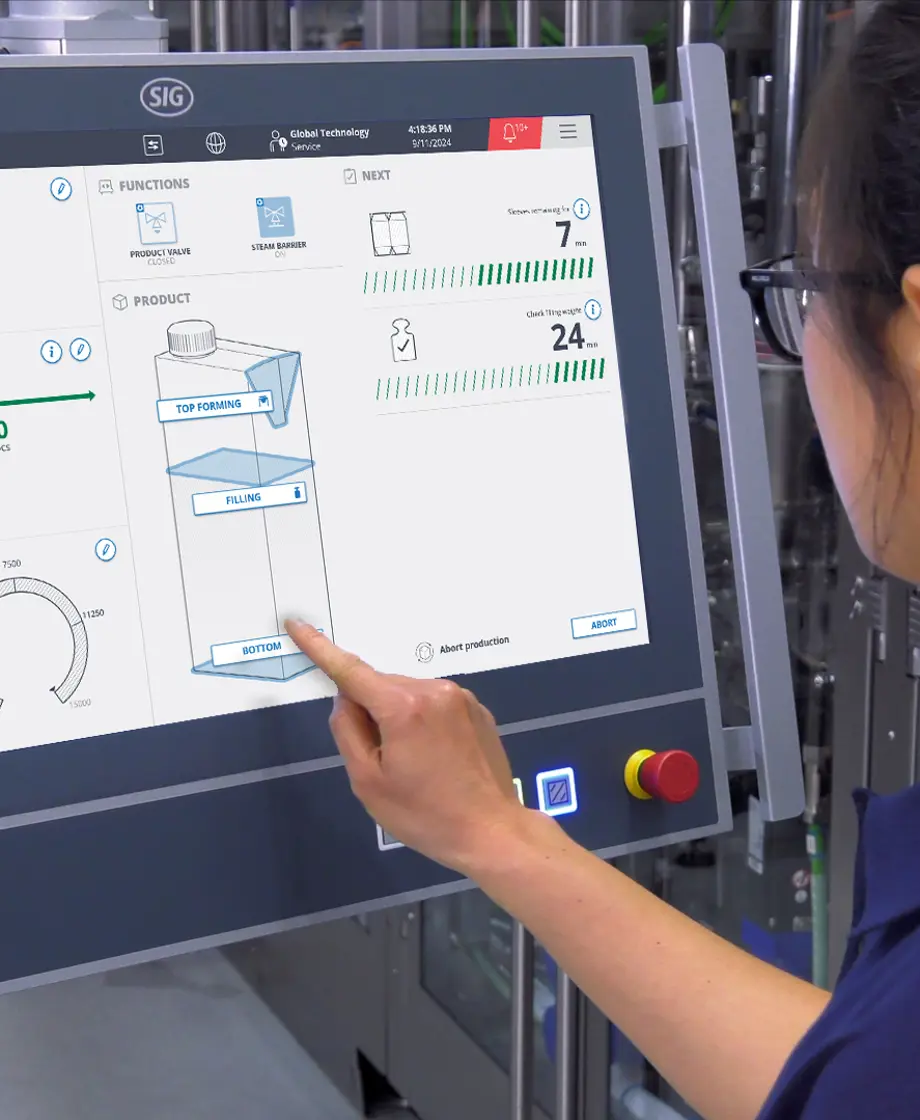 The SIG Neo Slimline 15 Aseptic machine includes the state-of-the-art SIG Neo HMI for intuitive operation and to generate smart insights on the performance of the filling machine.