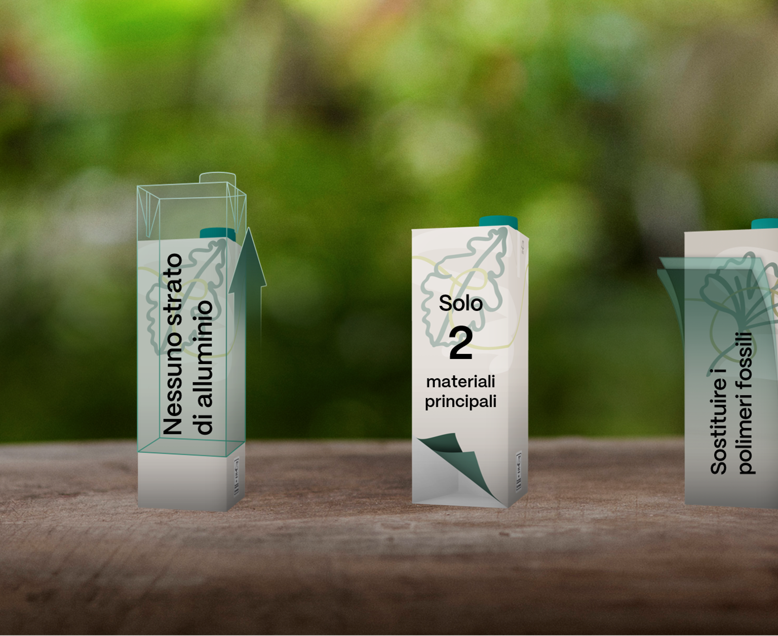 - Possibilità di scegliere un cartone senza alluminio e quindi legato al 100% a materiali rinnovabili di origine forestale, riducendo ulteriormente l'impronta di CO2 delle confezioni.
