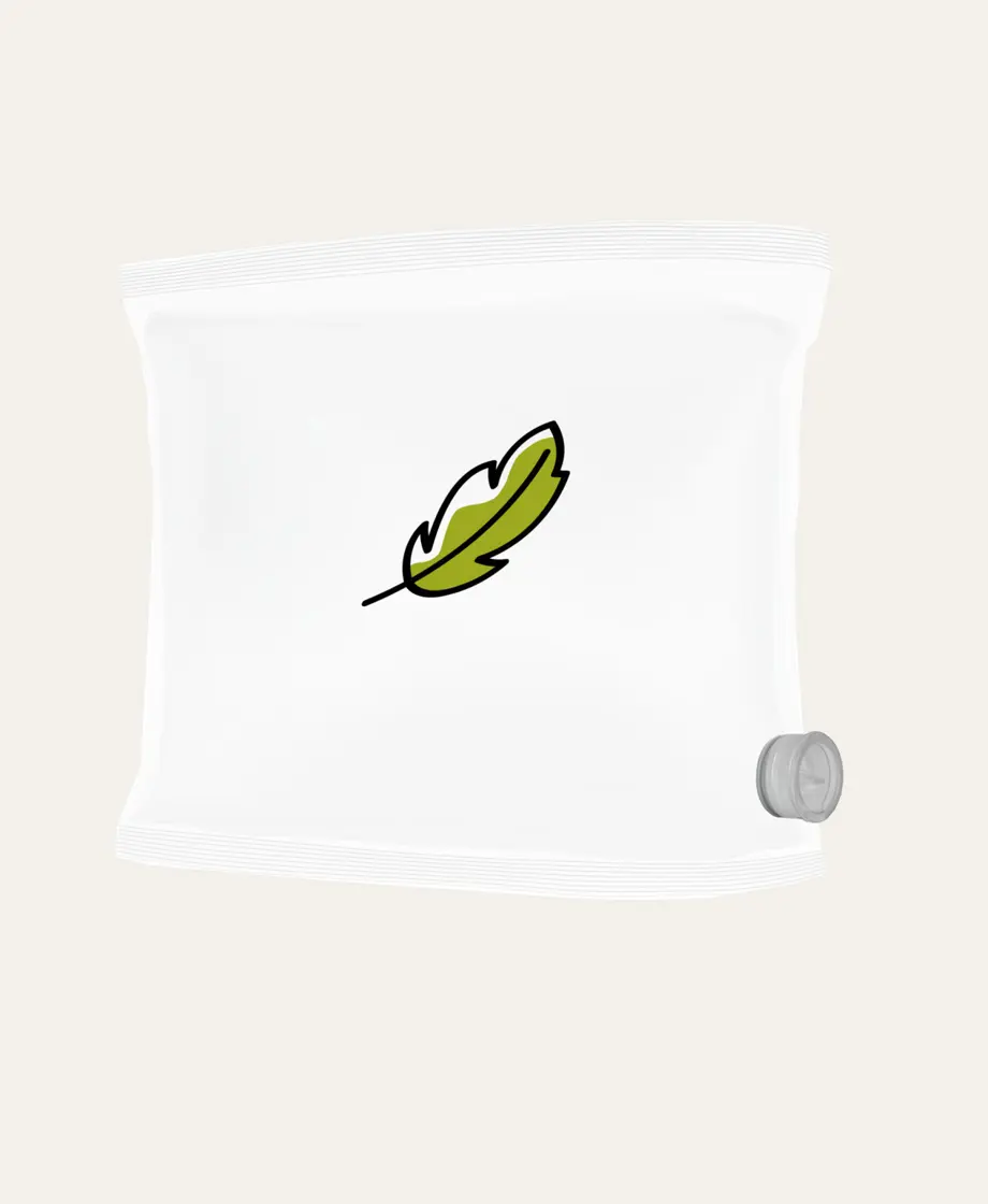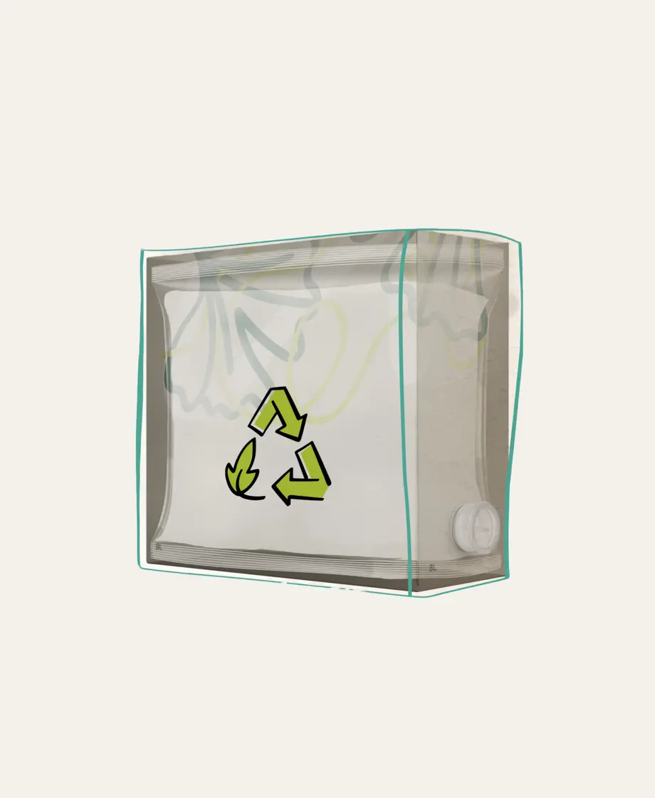 Fornite acqua di grande gusto in un formato sfuso con la prima confezione bag-in-box circolare e riciclabile al mondo, riconosciuta dallaAssociation of Plastic Recyclers. Questa confezione può sostituire le bottiglie rigide in PET e ridurre significativamente la quantità di plastica per litro d'acqua.