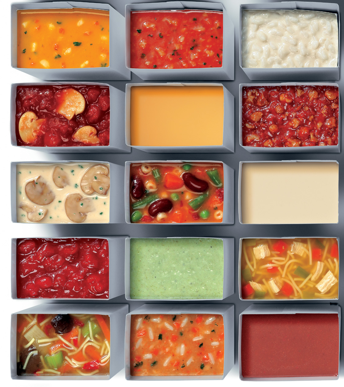 Um produto típico que requer enchimento de duas fases é uma sopa de baixa viscosidade com grandes pedaços de vegetais. Os pedaços de vegetais são envasados junto com um líquido de transporte viscoso em uma primeira etapa. Em uma segunda etapa, água ou caldo adicional é envasado na embalagem, ajustando o nível de viscosidade desejado.