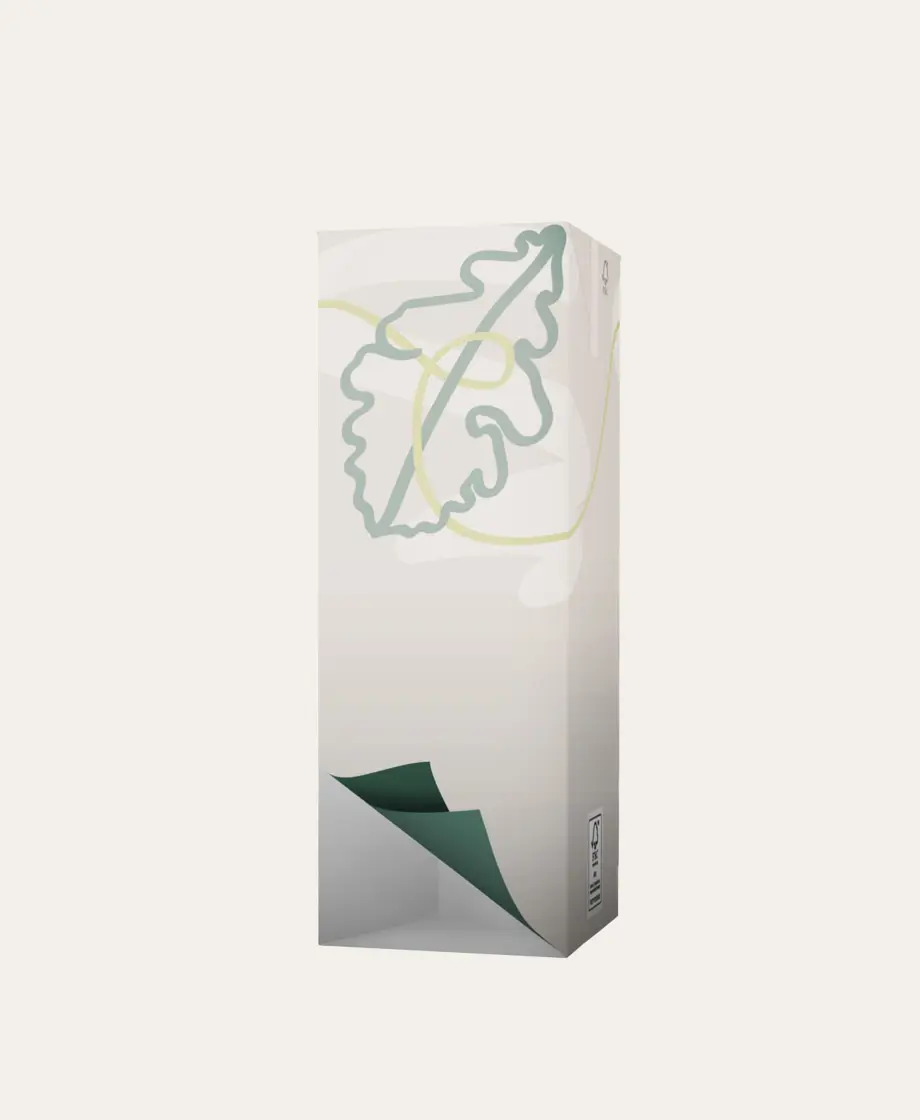 **mass-balanced: The polymers used for the closure and the lamination of the paperboard are linked to wood residues from paper-making through a mass-balance system, independently certified by ISCC PLUS (International Sustainability & Carbon Certification).