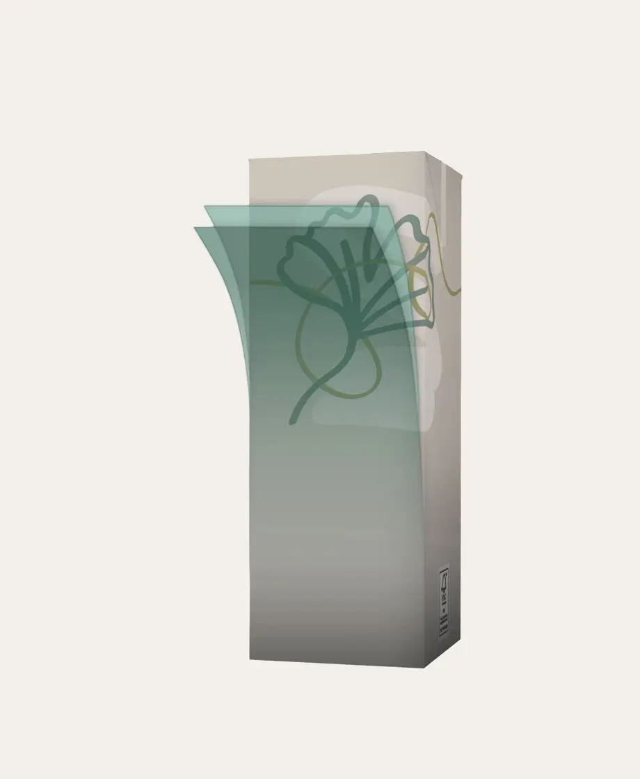 The polymers used for the closure and the lamination of the paperboard are linked to wood residues from paper-making through a mass-balance system, independently certified by ISCC PLUS (International Sustainability & Carbon Certification).